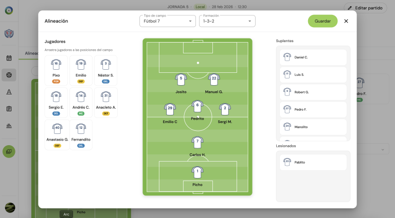 Cada sesión se conecta al calendario para que tengas la planificación de entrenamientos de fútbol de toda la temporada bajo control. Y si necesitas montar la alineación del fin de semana, la convocatoria o revisar las estadísticas de tu equipo, lo tienes todo a un clic de distancia.