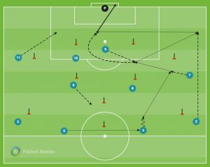 Siguiendo este hilo de trabajo, la tipología de ejercicios que utilizaremos irán enfocados a hacer acciones de velocidad media o alta y trabajos con carga cognitiva para el jugador para prepararlos de cara a las situaciones posteriores de juego real.