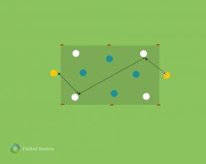 • Situación de finalización: este apartado puede generar debate, pues hay entrenadores que no creen en las finalizaciones en el calentamiento mientras otros lo ven como algo importante. Desde Fútbol Sesión destacamos esta fase como una que puede ayudar a, sobretodo, a los jugadores de ataque. Disponemos de un ámplio abanico de tareas que nos pueden ayudar en la finalización, como por ejemplo algún RT2 de simple ejecución con tiro, centro y remate, ejercicios disponibles en la amplia biblioteca de www.futbolsesión.com. Otra opción en este sentido es hacer alguna acción combinativa, o ruta de juego, que queremos potenciar en la competición.